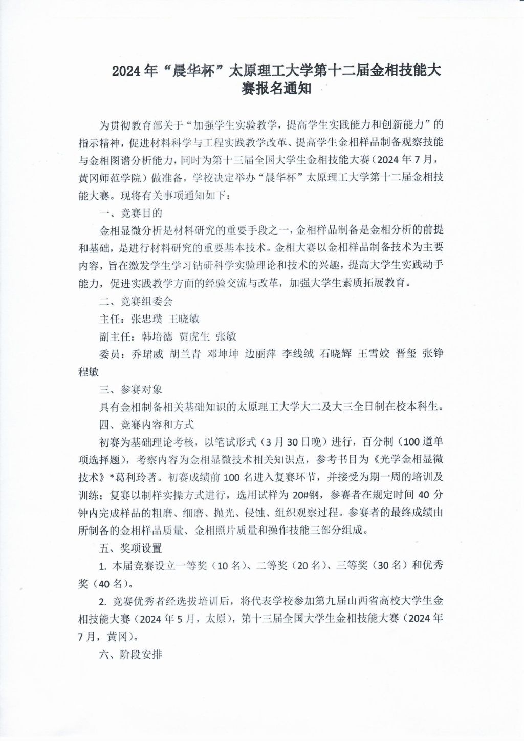 2024年“晨华杯”9227新葡的京集团第十二届金相技能大赛报名通知