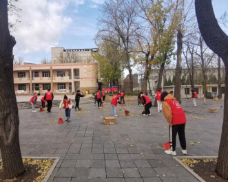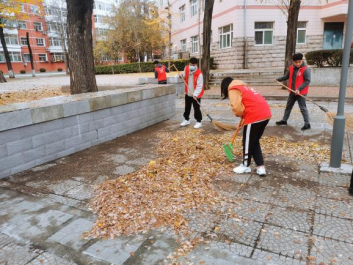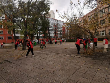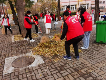 当天下午晴空万里,志愿者们在中西广场准时集合。打扫过程中,志愿者们以小组为单位,或拿着扫把堆起来沉积的落叶,或推着垃圾桶方便收集;几名同学拿扫帚,几名同学用簸箕往垃圾桶里倾倒。同学们都认真参与清扫工作,良好的精神风貌和热情洋溢的工作状态展现了同学们积极向上乐于奉献的精神,充分体现了“无私奉献,不求回报”的志愿精神,他们在中西广场穿梭的身影为肃穆凄冷的秋天带来了一丝活跃和暖意。
