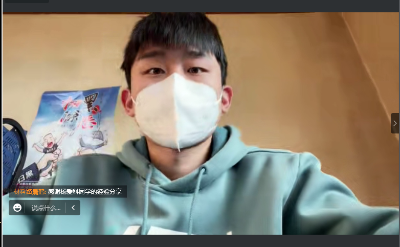 2022年11月5日,材科科学与工程学院17级毕业生杨爱科同学,现中共大武口区委组织部工作。为19级考研同学开展生涯规划系列活动。受疫情影响,这次生涯规划采取线上的方式,杨爱科同学讲述了自己在太原理工的学习、生活、比赛以及考公务员经历。